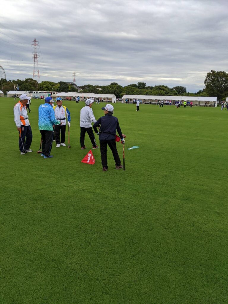 1日目はあまり天気が良くなかったですが、2日目は天候に恵まれ選手の皆さんがグラウンド・ゴルフを